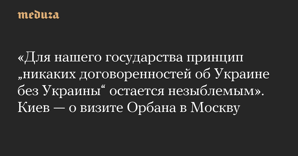 «Для нашего государства принцип „никаких договоренностей об Украине без Украины“ остается незыблемым». Киев — о визите Орбана в Москву