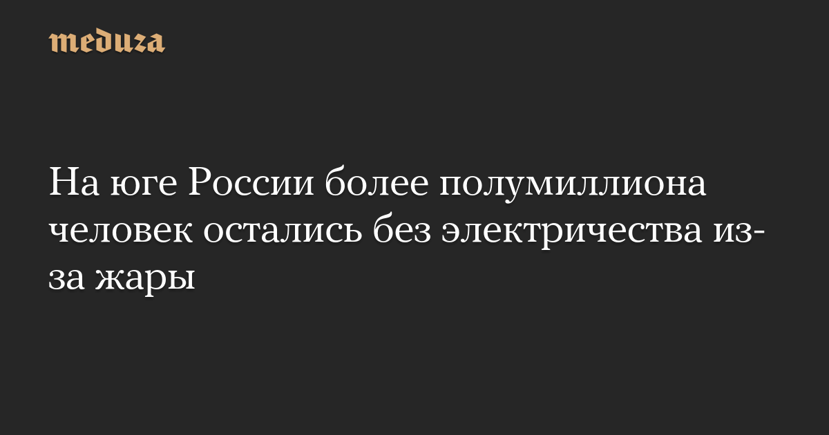Сотни тысяч жителей на юге России остались без электроснабжения из-за «аномально высоких температур». Об этом говорится в телеграм-канале министерства энергетики России.