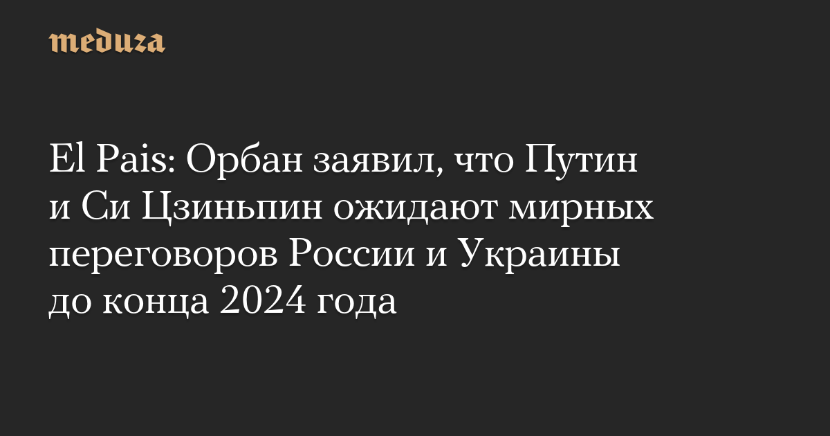 El Pais: Орбан заявил, что Путин и Си Цзиньпин ожидают мирных переговоров России и Украины до конца 2024 года
