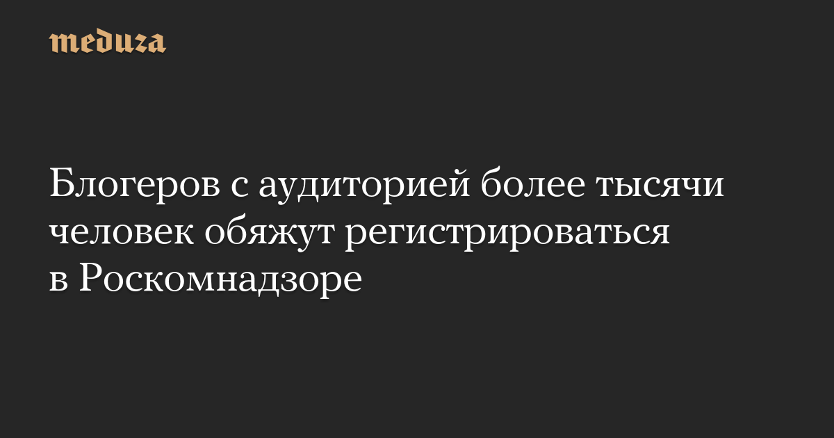 Блогеров с аудиторией более тысячи человек обяжут регистрироваться в Роскомнадзоре