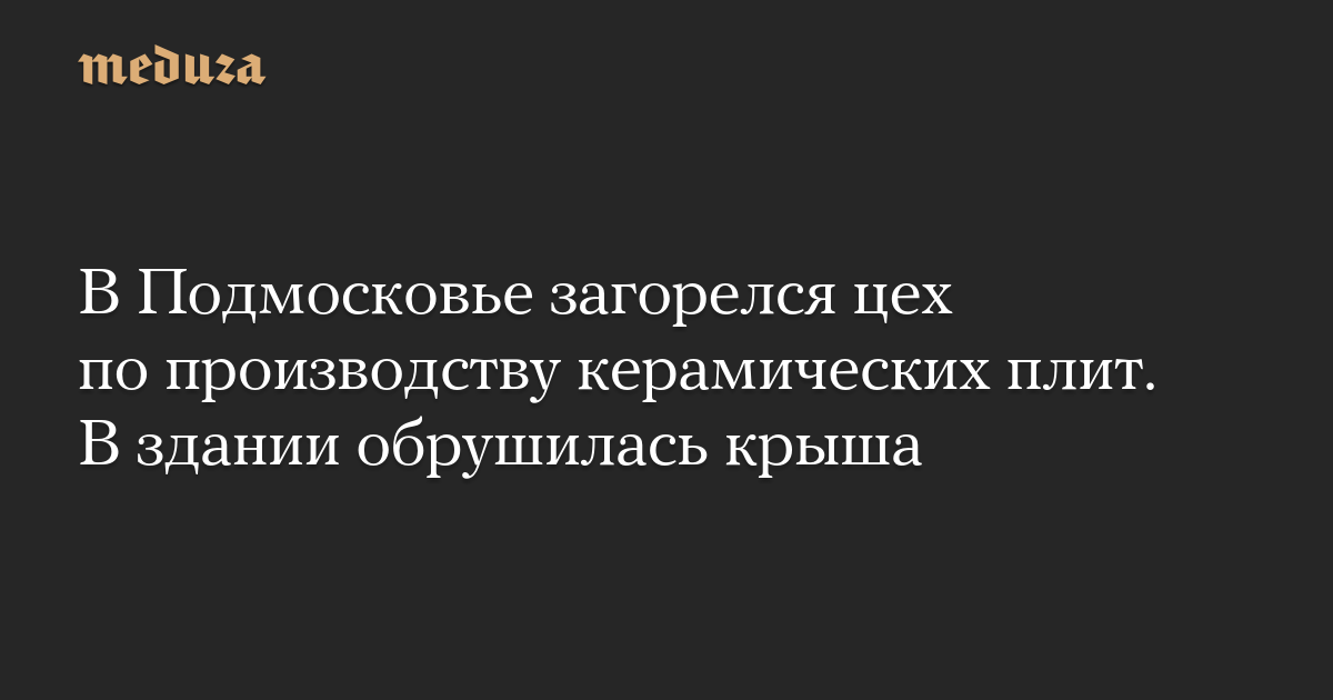 В Подмосковье загорелся цех по производству керамических плит. В здании обрушилась крыша