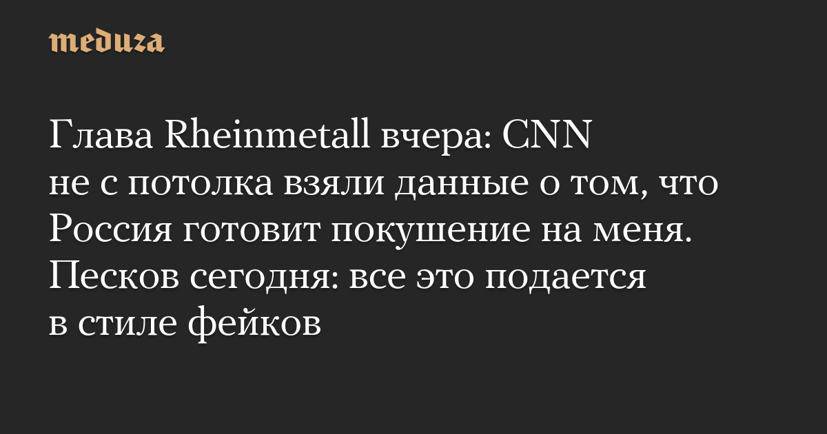 Глава Rheinmetall вчера: CNN не с потолка взяли данные о том, что Россия готовит покушение на меня. Песков сегодня: все это подается в стиле фейков