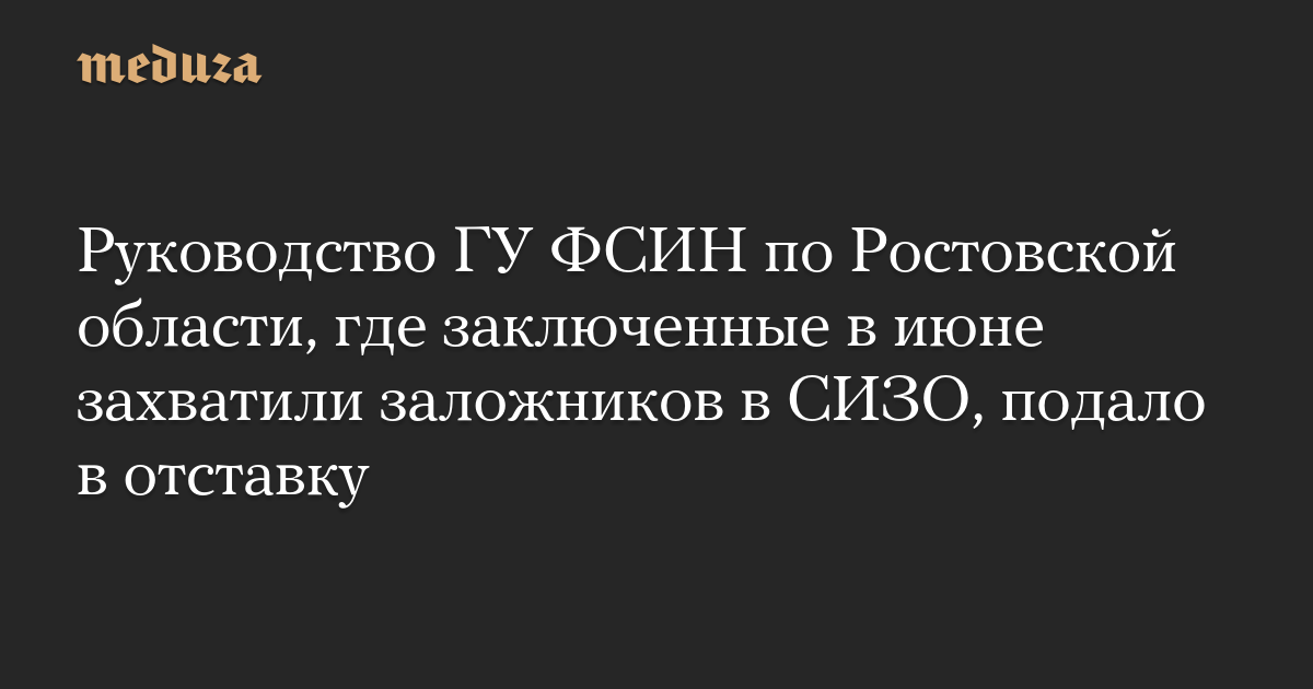 Руководство ГУ ФСИН по Ростовской области, где заключенные в июне захватили заложников в СИЗО, подало в отставку