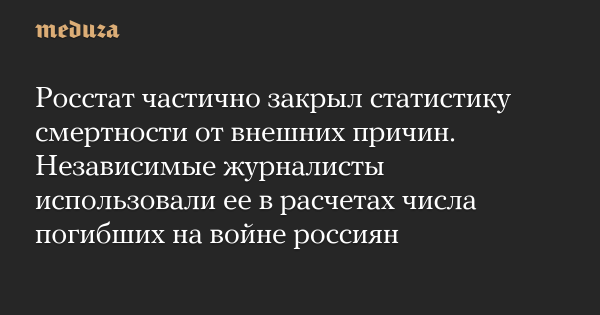 Росстат частично закрыл статистику смертности от внешних причин. Независимые журналисты использовали ее в расчетах числа погибших на войне россиян