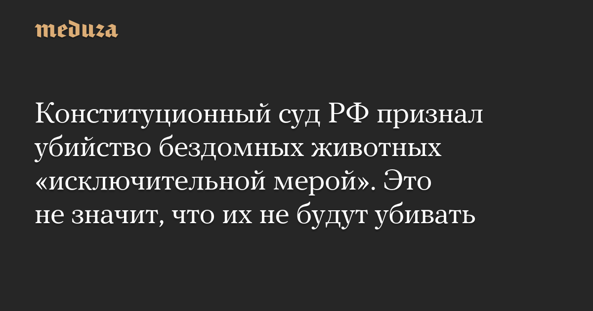 Конституционный суд (КС) России признал умерщвление животных без владельцев «исключительной мерой», которая оправдана только в том случае, когда другие меры не могут обеспечить «защиту» человека.