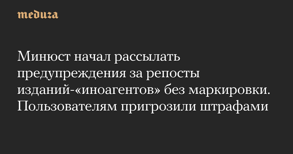 Минюст начал рассылать предупреждения за репосты изданий-«иноагентов» без маркировки. Пользователям пригрозили штрафами