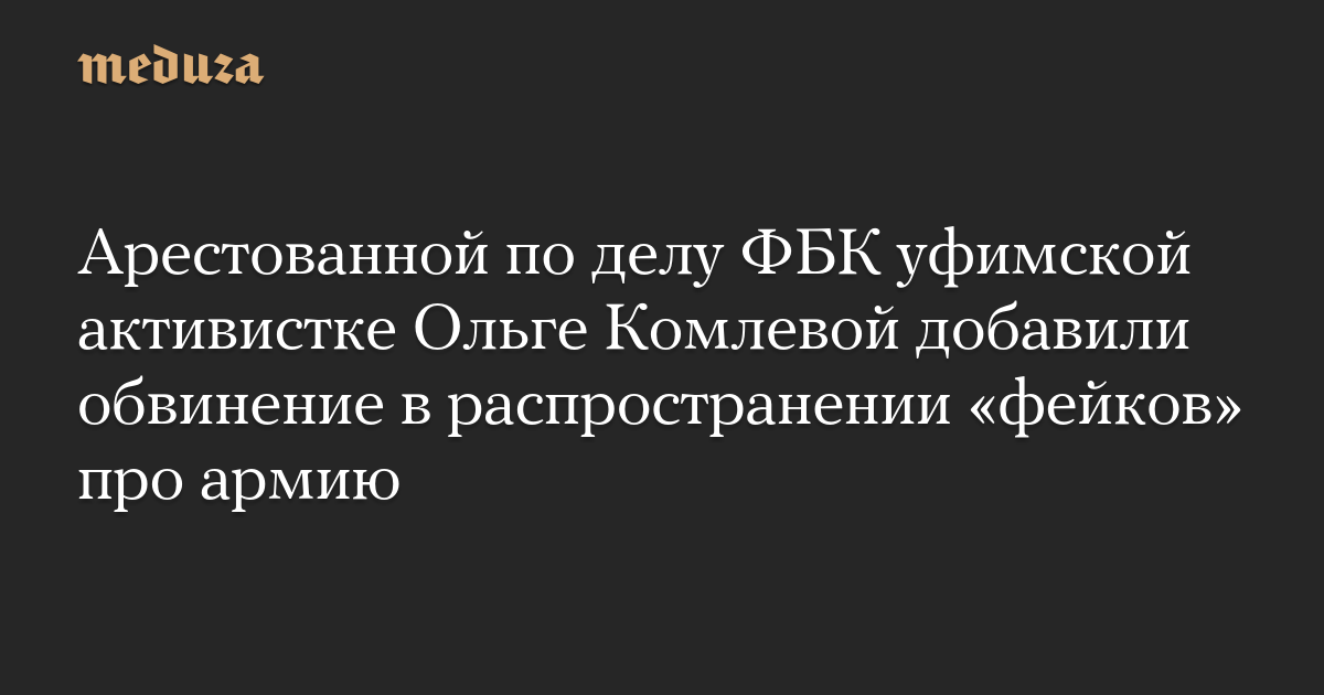 Арестованной по делу ФБК уфимской активистке Ольге Комлевой добавили обвинение в распространении «фейков» про армию