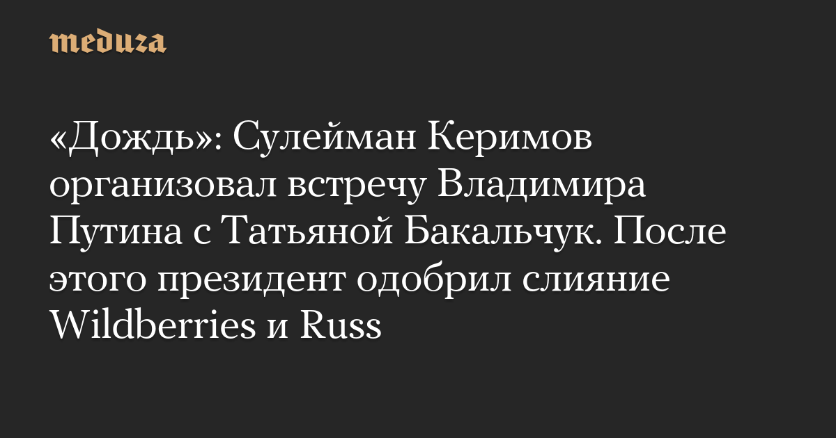«Дождь»: Сулейман Керимов организовал встречу Владимира Путина с Татьяной Бакальчук. После этого президент одобрил слияние Wildberries и Russ