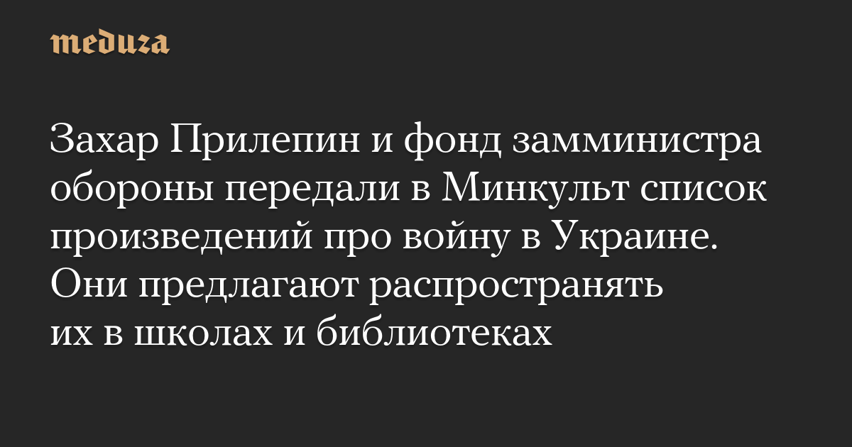 Захар Прилепин и фонд замминистра обороны передали в Минкульт список произведений про войну в Украине. Они предлагают распространять их в школах и библиотеках
