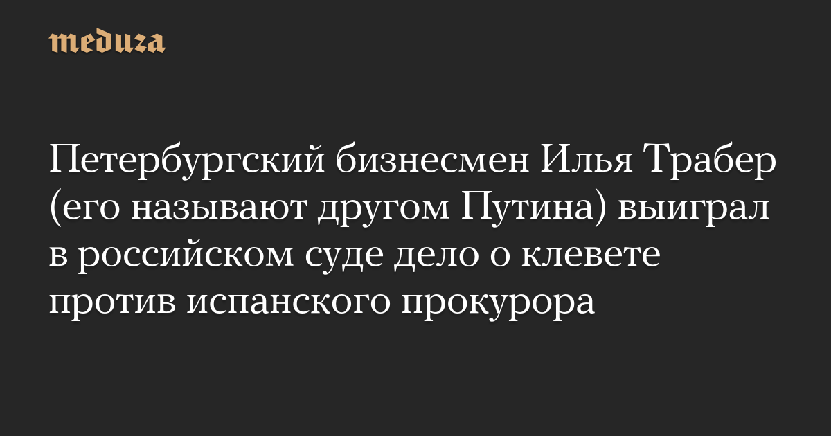 Петербургский бизнесмен Илья Трабер (его называют другом Путина) выиграл в российском суде дело о клевете против испанского прокурора
