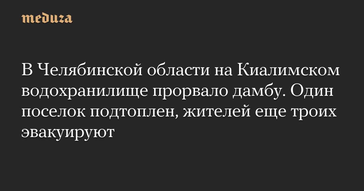 В администрации города Карабаш сообщили, что на водохранилище в связи с резким поднятием уровня воды из-за ливней произошло разрушение плотины. В оперативном штабе Карабашского городского округа заявили, что жителям пяти поселков, находящихся в зоне подтопления (Киолим, Мухаметово, Карасево, Байдашево, Сактаево), нужно быть готовыми к эвакуации.