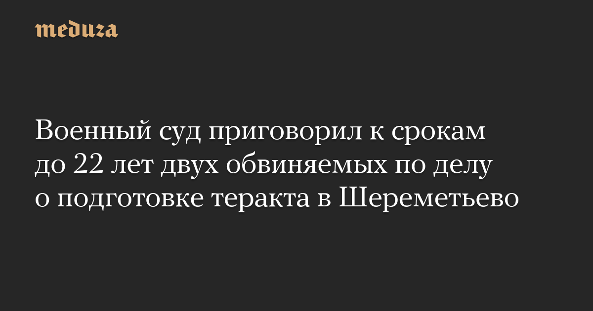 Военный суд приговорил к срокам до 22 лет двух обвиняемых по делу о подготовке теракта в Шереметьево