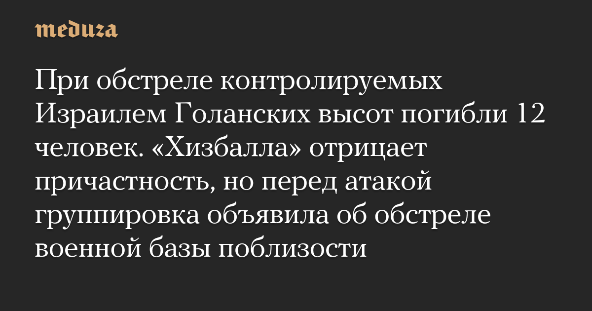 При обстреле контролируемых Израилем Голанских высот погибли 12 человек. «Хизбалла» отрицает причастность, но перед атакой группировка объявила об обстреле военной базы поблизости