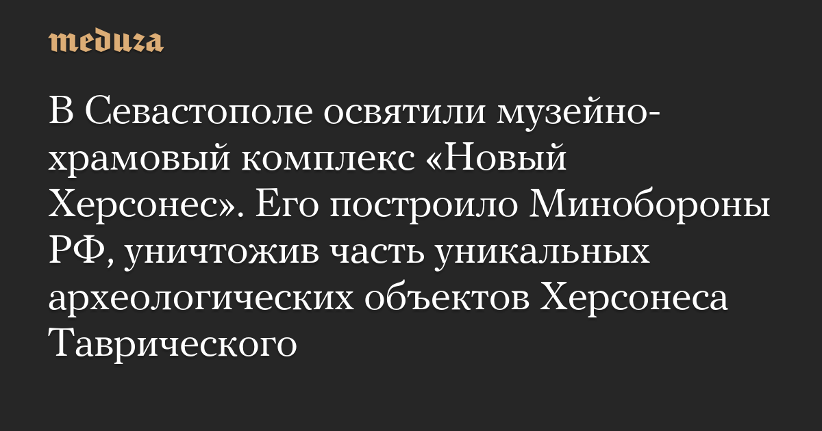 В Севастополе освятили музейно-храмовый комплекс «Новый Херсонес». Его построило Минобороны РФ, уничтожив часть уникальных археологических объектов Херсонеса Таврического