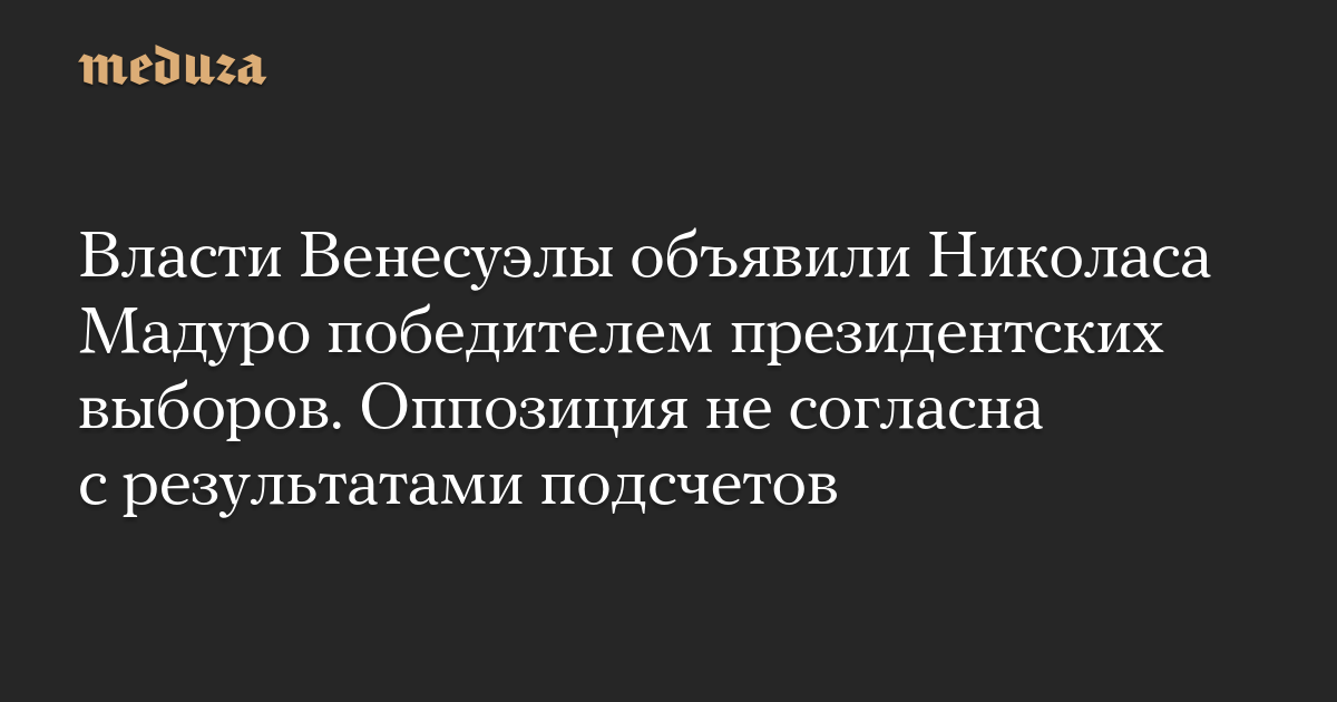 Власти Венесуэлы объявили Николаса Мадуро победителем президентских выборов. Оппозиция не согласна с результатами подсчетов