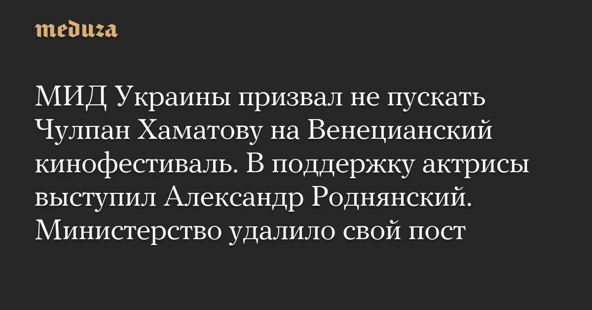 Министерство иностранных дел Украины удалило из соцсетей свой пост с призывом не пускать российскую актрису Чулпан Хаматову на Венецианский кинофестиваль.
