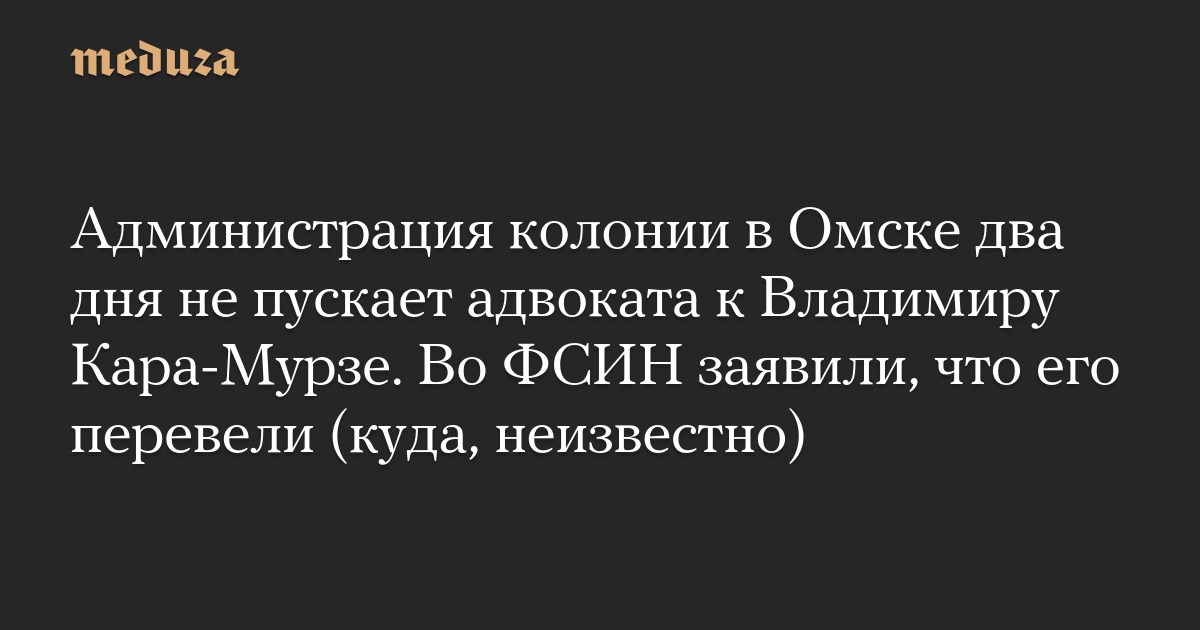 Администрация колонии в Омске два дня не пускает адвоката к Владимиру Кара-Мурзе. Во ФСИН заявили, что его перевели (куда, неизвестно)
