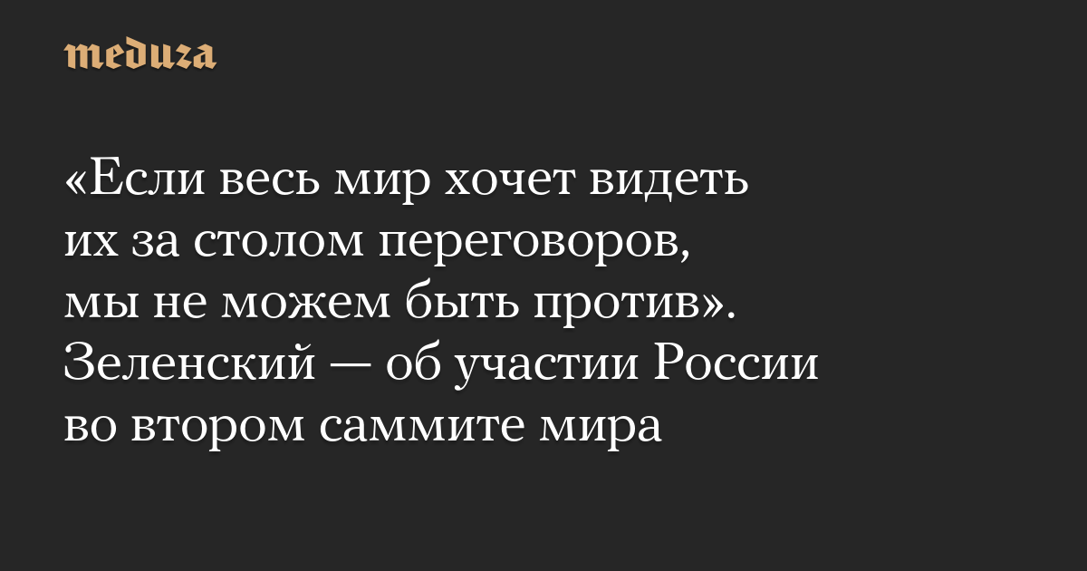 «Если весь мир хочет видеть их за столом переговоров, мы не можем быть против». Зеленский — об участии России во втором саммите мира