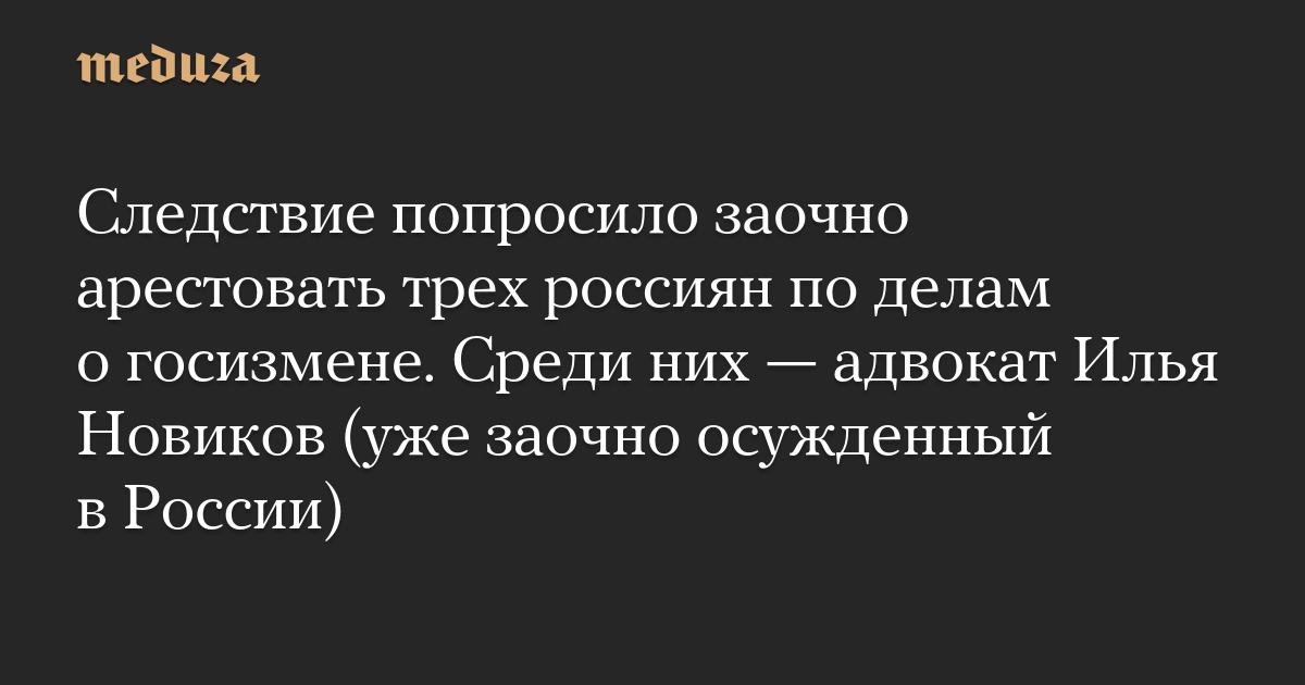 Следствие попросило заочно арестовать трех россиян по делам о госизмене. Среди них — адвокат Илья Новиков (уже заочно осужденный в России)