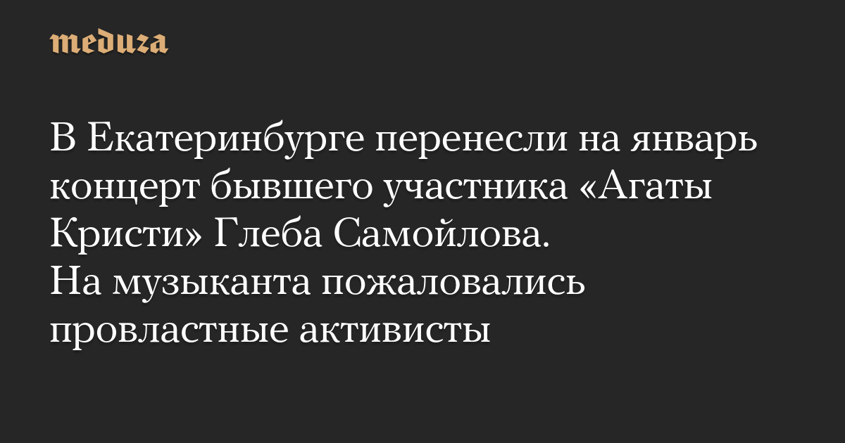 В Екатеринбурге перенесли на январь концерт бывшего участника «Агаты Кристи» Глеба Самойлова. На музыканта пожаловались провластные активисты