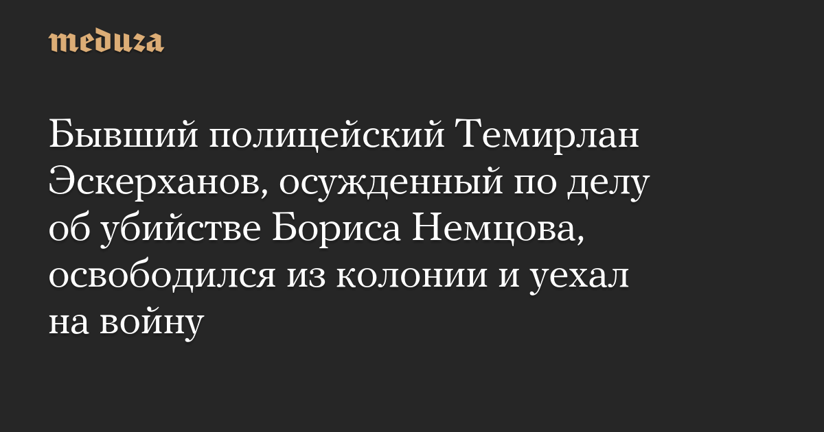 Бывший полицейский Темирлан Эскерханов, осужденный по делу об убийстве Бориса Немцова, освободился из колонии и уехал на войну
