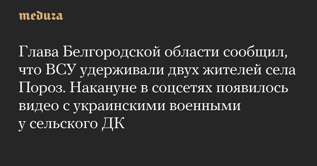Двое жителей села Пороз Грайворонского округа Белгородской области «насильственно удерживались» Вооруженными силами Украины, сообщил глава региона Вячеслав Гладков вечером 10 августа.
