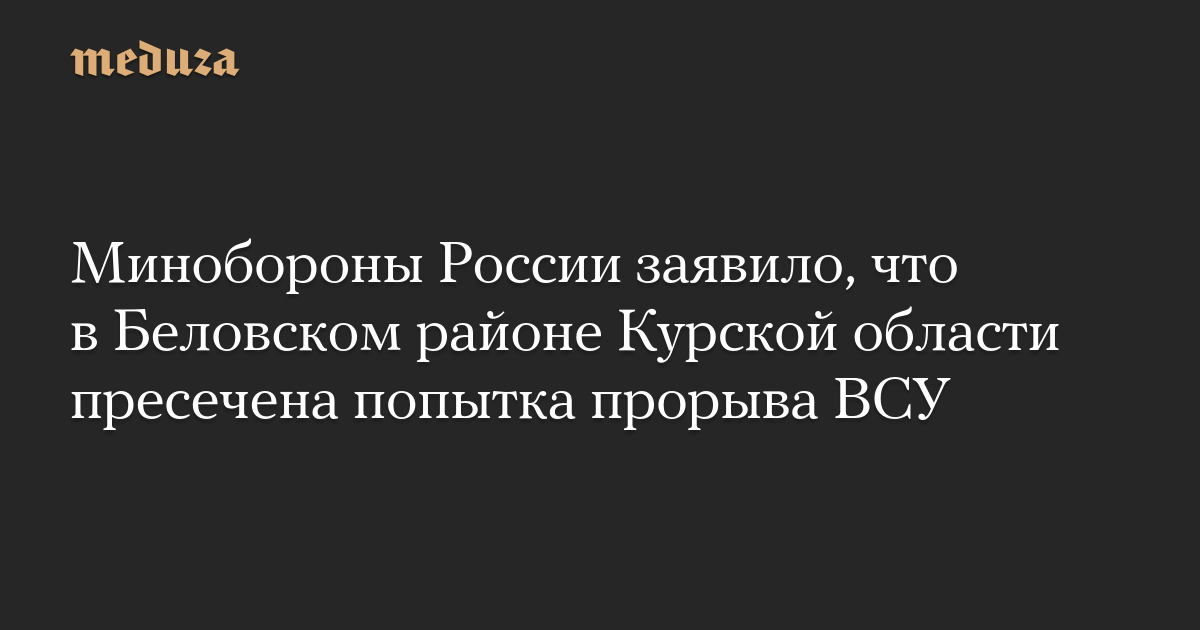 Минобороны России заявило, что в Беловском районе Курской области пресечена попытка прорыва ВСУ
