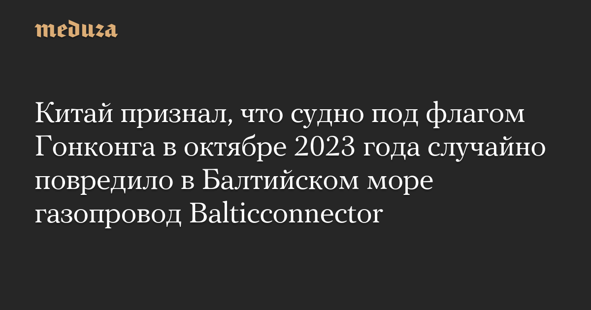 Китай признал, что судно под флагом Гонконга в октябре 2023 года случайно повредило в Балтийском море газопровод Balticconnector