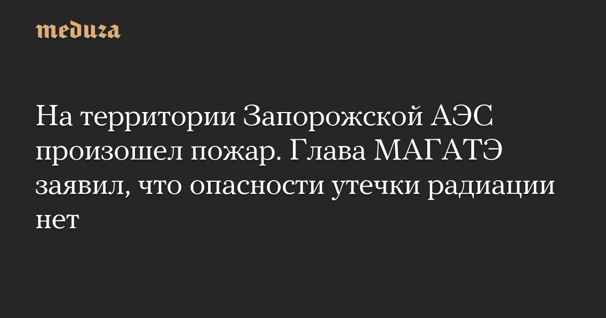 На территории Запорожской АЭС произошел пожар. Глава МАГАТЭ заявил, что опасности утечки радиации нет