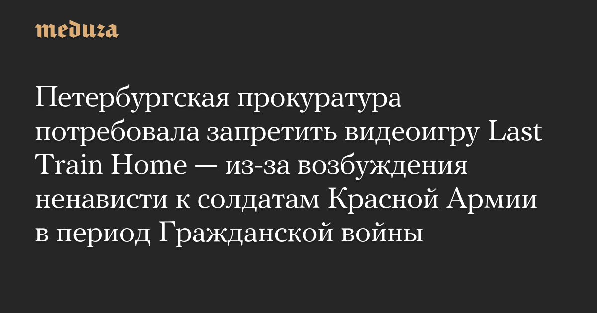 Петербургская прокуратура потребовала запретить видеоигру Last Train Home — из-за возбуждения ненависти к солдатам Красной Армии в период Гражданской войны