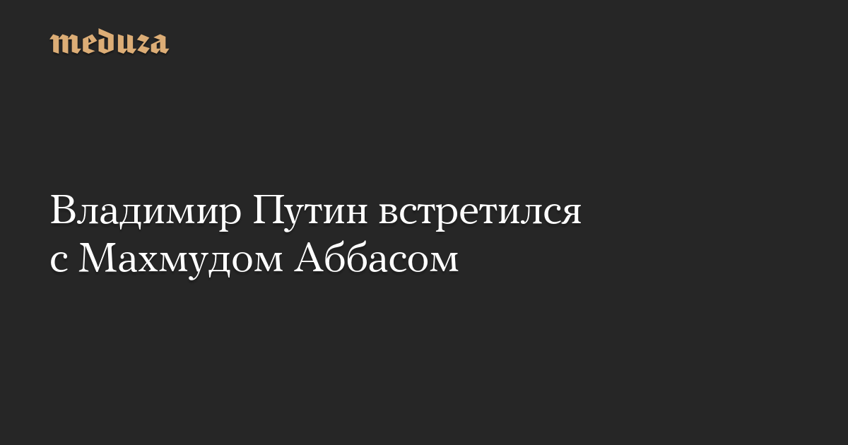 Президент РФ Владимир Путин встретился с главой Палестинской национальной администрации (ПНА) Махмудом Аббасом. Переговоры проходят 13 августа в резиденции Путина в Ново-Огарево, сообщается на сайте Кремля.