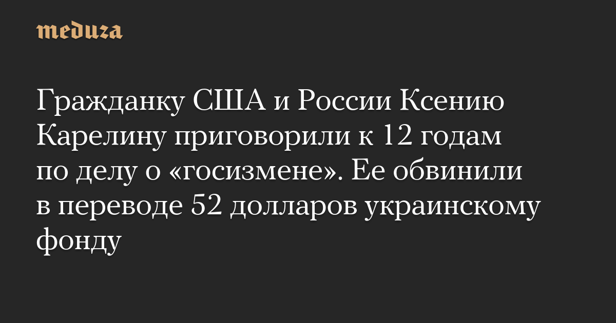 Гражданку США и России Ксению Карелину приговорили к 12 годам по делу о «госизмене». Ее обвинили в переводе 52 долларов украинскому фонду