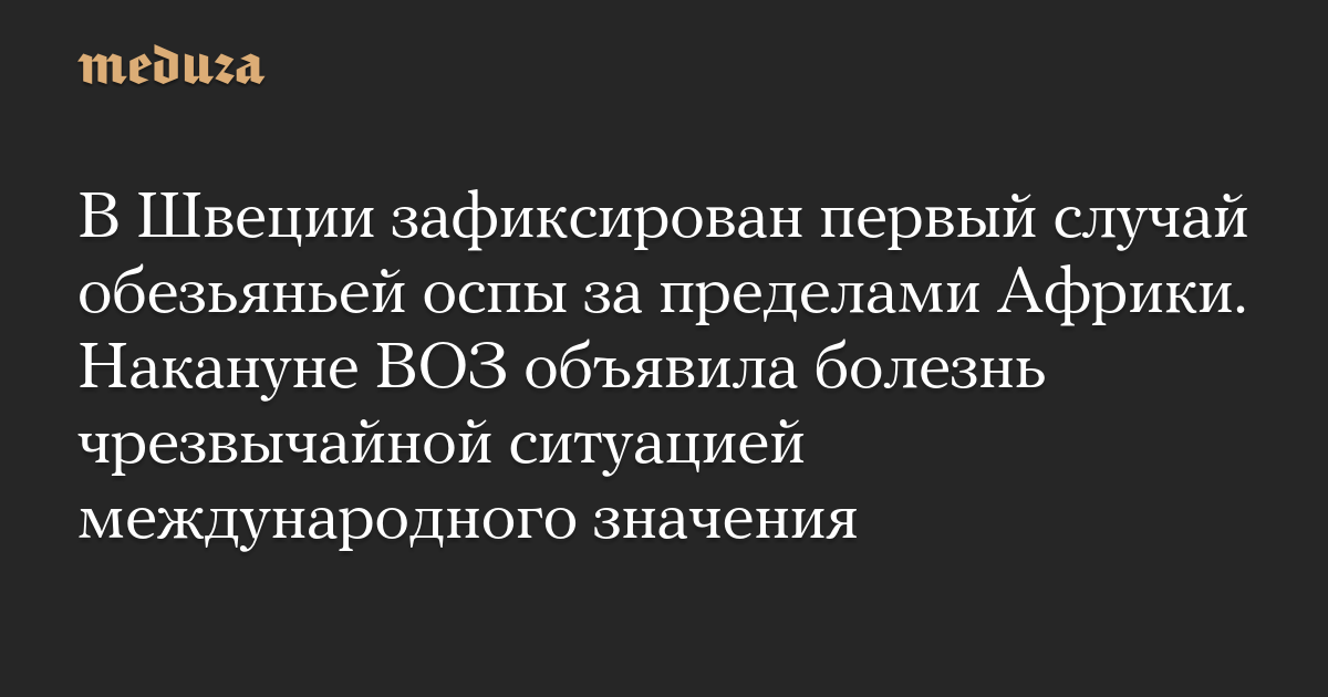 В Швеции зафиксирован первый случай обезьяньей оспы за пределами Африки. Накануне ВОЗ объявила болезнь чрезвычайной ситуацией международного значения