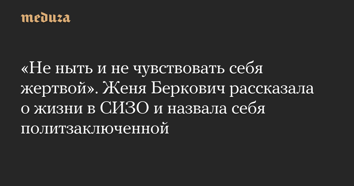 «Не ныть и не чувствовать себя жертвой». Женя Беркович рассказала о жизни в СИЗО и назвала себя политзаключенной