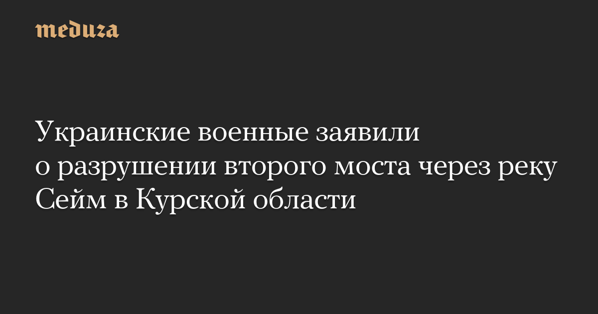 Украинские военные заявили о разрушении второго моста через реку Сейм в Курской области