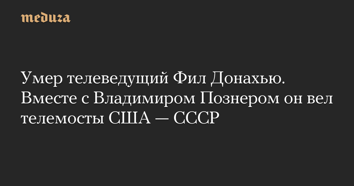 Умер телеведущий Фил Донахью. Вместе с Владимиром Познером он вел телемосты США — СССР