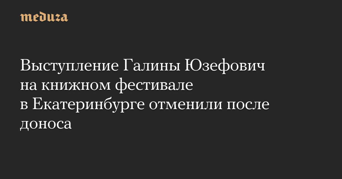Книжный фестиваль «Красная строка» в Екатеринбурге отменил выступление литературного критика Галины Юзефович, которое было запланировано в онлайн-формате. Об этом в своем телеграм-канале рассказала сама Юзефович.