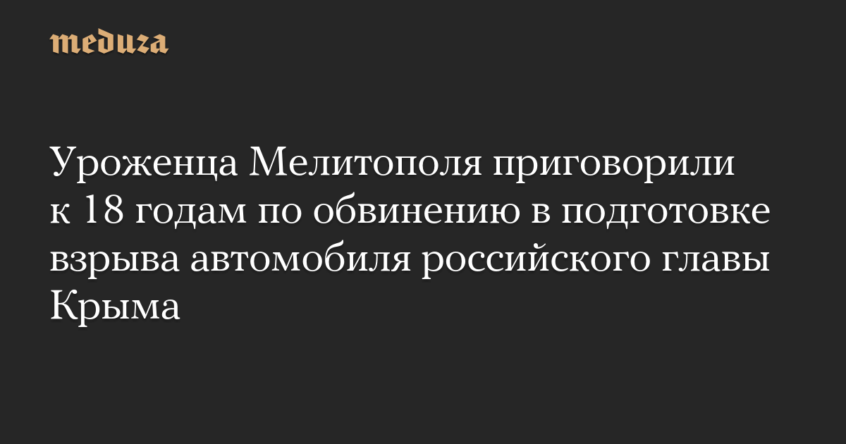 Уроженца Мелитополя приговорили к 18 годам по обвинению в подготовке взрыва автомобиля российского главы Крыма