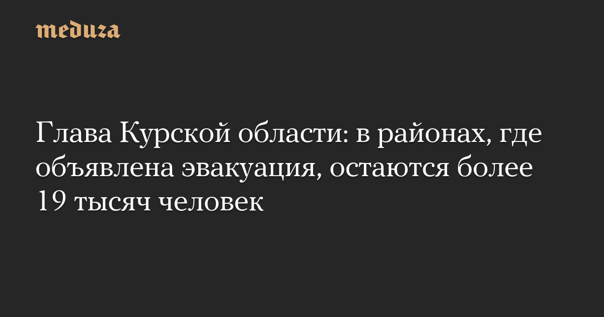Глава Курской области: в районах, где объявлена эвакуация, остаются более 19 тысяч человек