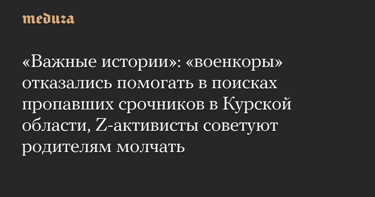 «Важные истории»: «военкоры» отказались помогать в поисках пропавших срочников в Курской области, Z-активисты советуют родителям молчать