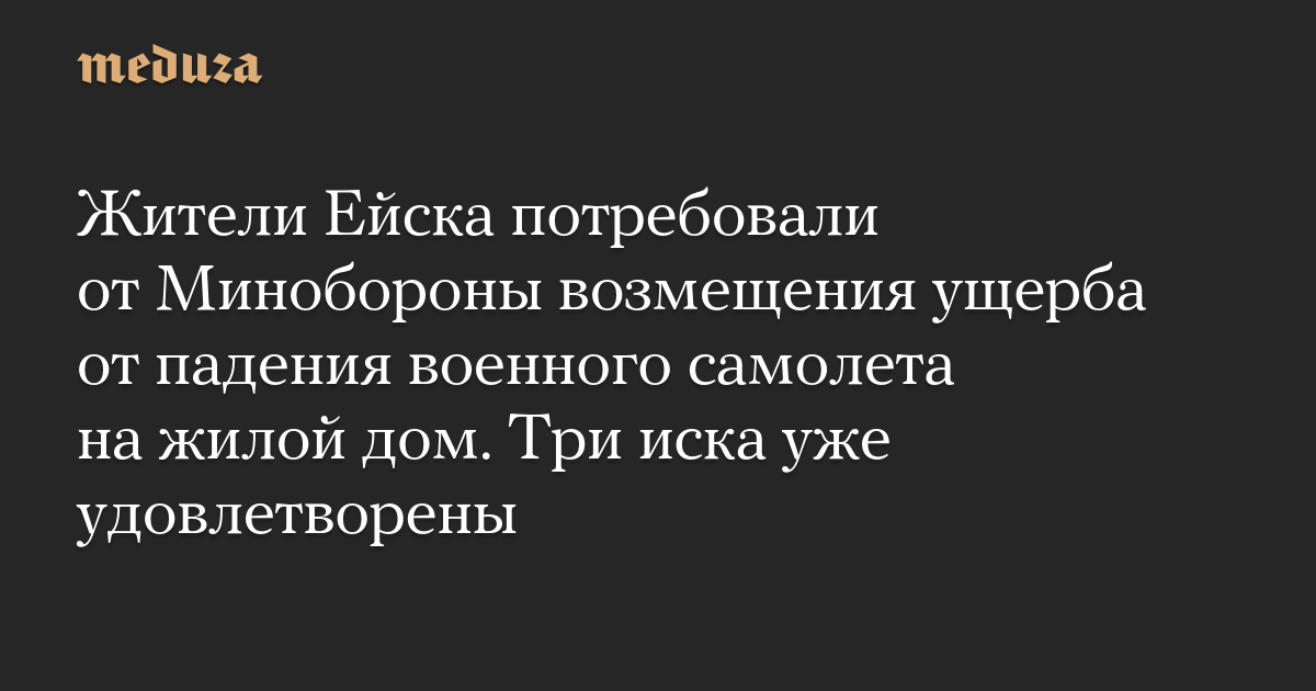 Шесть семей из Ейска Краснодарского края подали в суд иски, требуя возместить ущерб от падения военного самолета Су-34 на жилой дом в октябре 2022 года, пишет «Коммерсант».