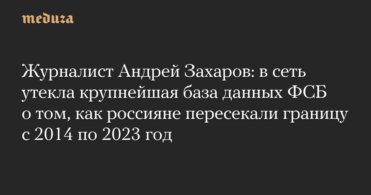 Журналист Андрей Захаров: в сеть утекла крупнейшая база данных ФСБ о том, как россияне пересекали границу с 2014 по 2023 год