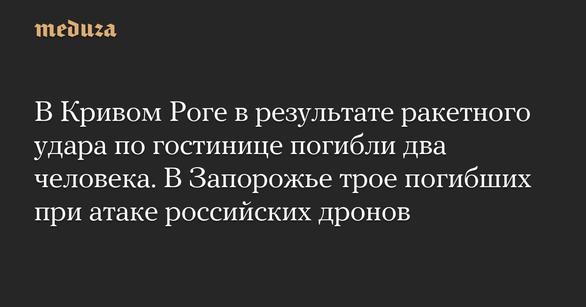 В Кривом Роге в результате ракетного удара по гостинице погибли два человека. В Запорожье трое погибших при атаке российских дронов