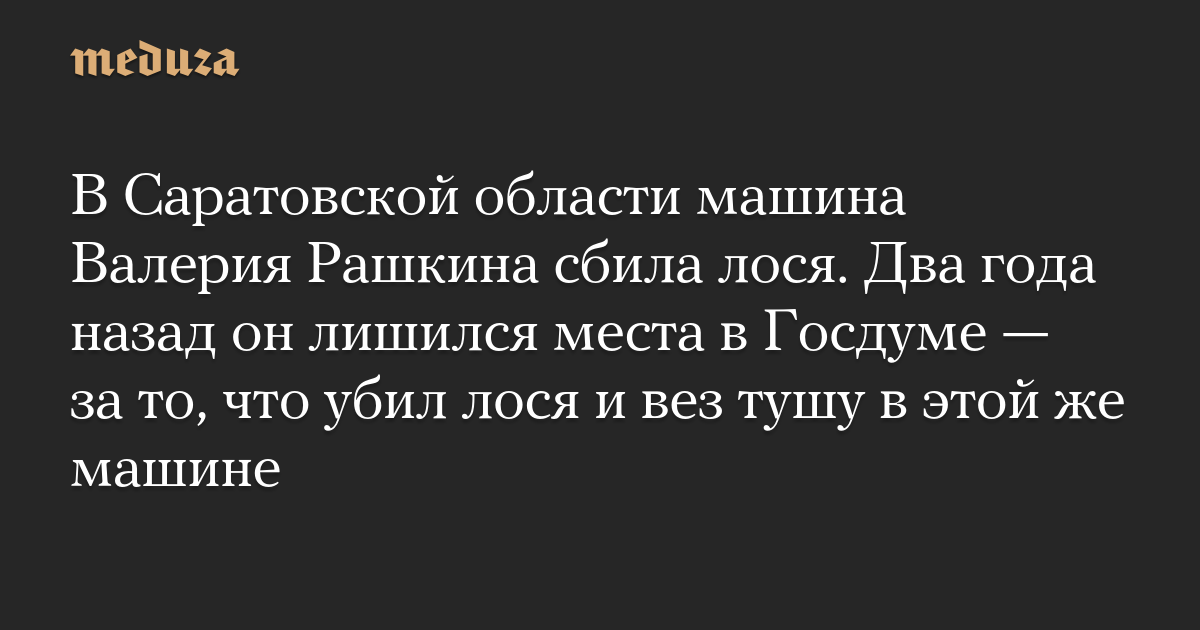 В Саратовской области машина Валерия Рашкина сбила лося. Два года назад он лишился места в Госдуме — за то, что убил лося и вез тушу в этой же машине