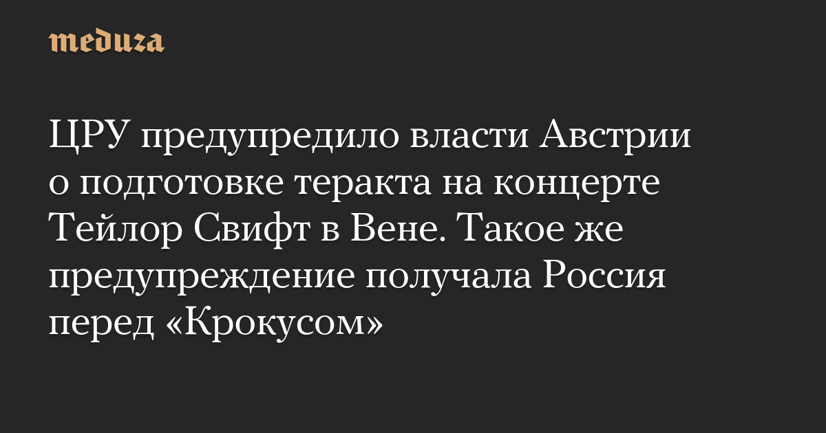 ЦРУ предупредило власти Австрии о подготовке теракта на концерте Тейлор Свифт в Вене. Такое же предупреждение получала Россия перед «Крокусом»