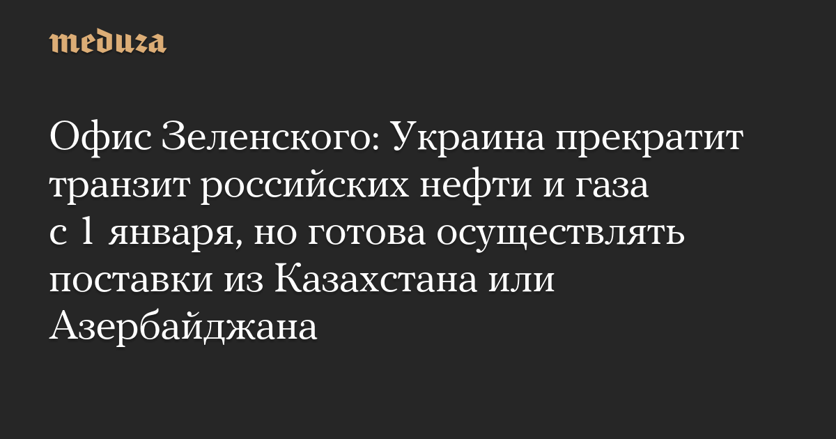 Офис Зеленского: Украина прекратит транзит российских нефти и газа с 1 января, но готова осуществлять поставки из Казахстана или Азербайджана