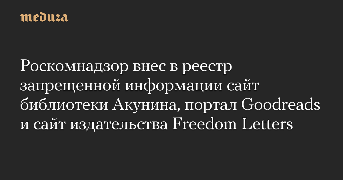 Роскомнадзор внес в реестр запрещенной информации сайт библиотеки Акунина, портал Goodreads и сайт издательства Freedom Letters