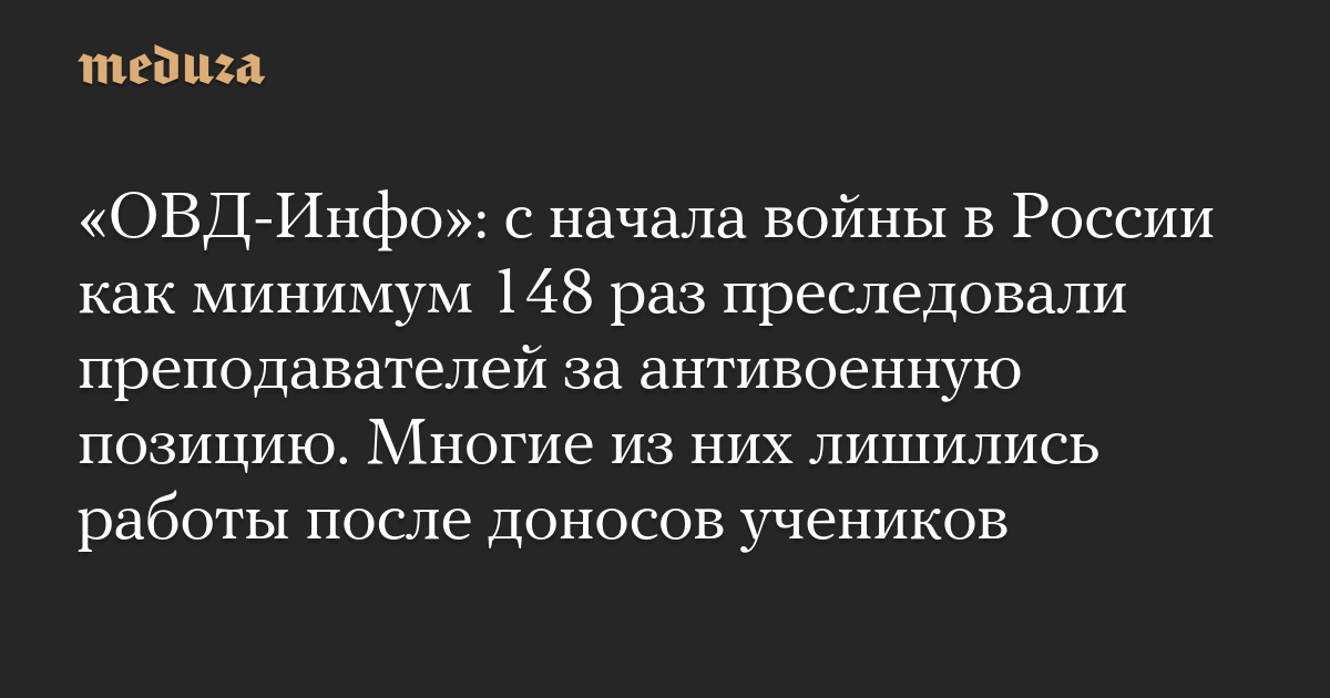 «ОВД-Инфо»: с начала войны в России как минимум 148 раз преследовали преподавателей за антивоенную позицию. Многие из них лишились работы после доносов учеников