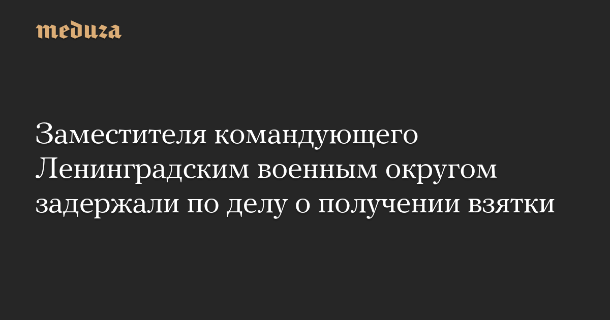 Заместителя командующего Ленинградским военным округом задержали по делу о получении взятки