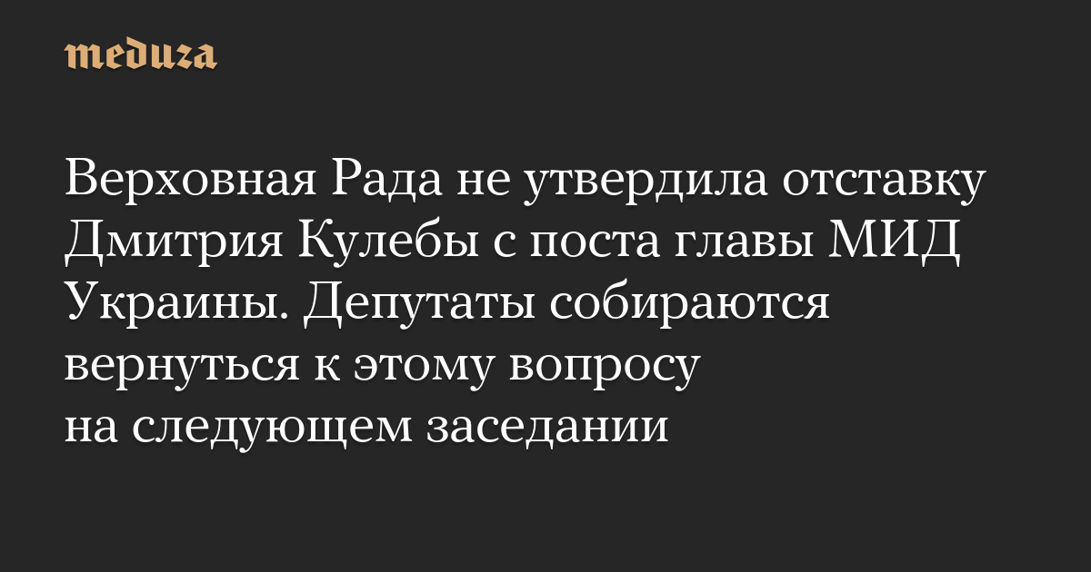 Верховная Рада не утвердила отставку Дмитрия Кулебы с поста главы МИД Украины. Депутаты собираются вернуться к этому вопросу на следующем заседании